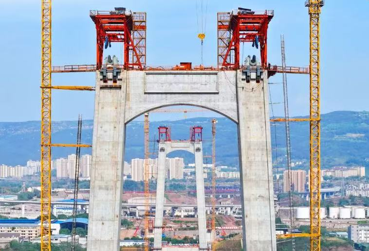 本年4月,黄桷沱长江大桥先导索成功跨过长江后,项目参建各方当即投入猫道架起作业中,紧锣密鼓地牵拉替换过渡索、承重索,构成单线往复式牵引体系,在百米高空持续“牵线搭桥天便完结了猫道施工。此次猫道架起完结后,大桥将全面转入主缆施工阶段。